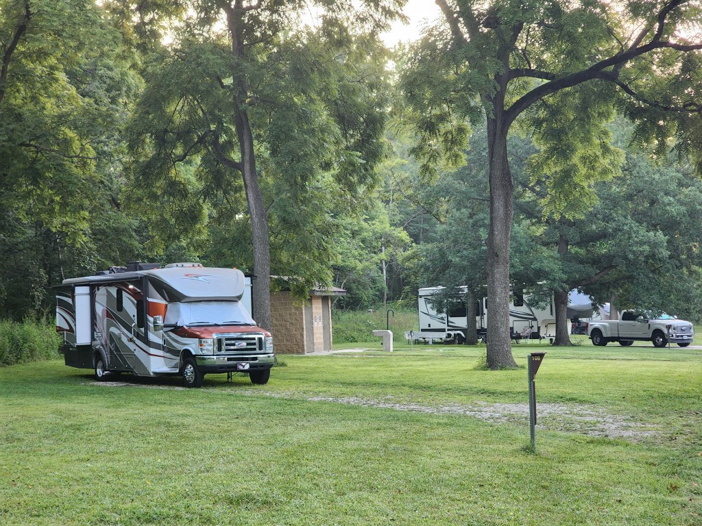 We are on our way to visit life long friends in Wisconsin but we had a few days to kill before we arrived so we stop off at the coolest state park in Oakwood, IL. Kickapoo State Recreation Area.